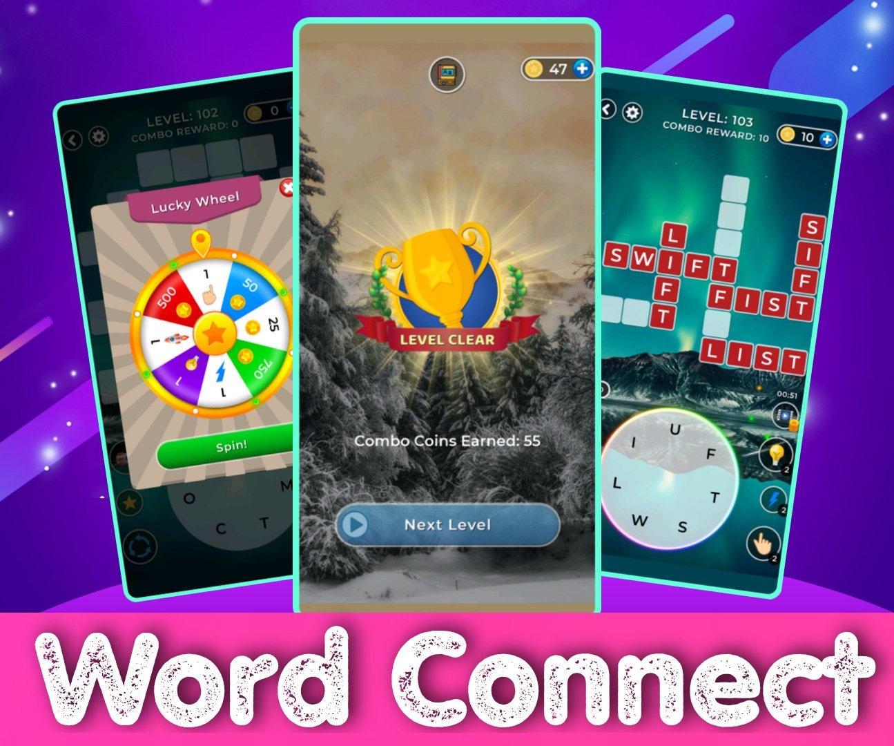 Word Connect Game play at least 30 levels to see all of the features. Earn coins by playing game and also earn coins by spinning and win